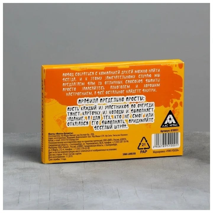 Купить игра для компании "фанты буханты" 20 карт от 100 руб. с доставкой до пункта выдачи в Белом. Интернет магазин ДекаМаркет. Оплата при получении.