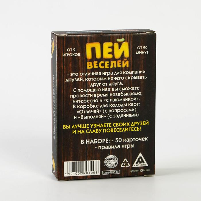 Купить игра для компании "пей веселей" 50 карт от 180 руб. с доставкой до пункта выдачи в Белом. Интернет магазин ДекаМаркет. Оплата при получении.